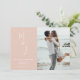 Anuncie seu dia de casamento com sua foto incrível sobre um fundo de rosa blush junto com suas iniciais em um capricho moderno roteiro de caligrafia na frente da carta, e folhas botânicas suaves na parte de trás da carta. Ideal Salvar a Data para casamentos, noivados, aniversários e outros eventos especiais.