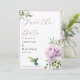 Imagem simples e adorável, com uma rosa púrpura de cor-d-água e folhas e um beija-flor colorido. O fundo é branco com uma borda roxa suave