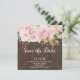 Ajude sua família e amigos a se lembrarem do dia mais importante da sua vida com nossos Cartões salve a data de Luzes de Madeira Russo Rosa Rosa Rosa Rosa Rosa Rosa! Personalize com suas informações sobre seu dia especial. Projetado com rosas cor-de-rosa, madeira rústica, luzes de cordas e fontes modernas.