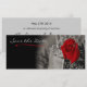 Um design muito elegante, clássico e sofisticado mas simples apresenta uma rosa vermelha solteiro, o hálito do bebê e um fundo preto e branco suave que desaparece suavemente em preto, apresentando a mensagem de Salvar a Data para seus destinatários.