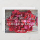Um cartão moderno de salvação com uma imagem de fundo das pétalas de rosa vermelha para uma reviravolta romântica. Personalize o cartão com diferentes fontes, tamanho de fonte e cores para os nomes e data. No centro traseiro do cartão, você tem a opção de fornecer informações adicionais (ex. site de casamento) ou pode excluir a área e deixar o vazio. Você também pode alterar o tamanho, a forma e o papel da placa para atender às suas necessidades.