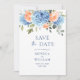 Reserve A Data Rosas Blush de Hydrangea Azul Elegante Casamento F