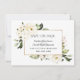 Design moderno e elegante com flores de creme branco em aquarela em torno de uma moldura em dourado; no verso, divisor floral, iniciais, em fundo branco. Use a ferramenta Personalizar para adicionar suas informações. Itens correspondentes podem ser encontrados na minha Coleção Flores Brancas em Flor.