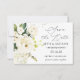 Este design apresenta uma ilustração aquarela de rosas de creme branco e hydrangea. No topo - confetti de efeito ouro e verde.
