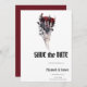 Rosas vermelhas e pretas com esqueleto em fundo branco. Um convite bonito que pode ser personalizado com seu nome. Selecione o botão "personalizar" para alterar o estilo, a cor e o tamanho da fonte.