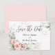 Elegantes rosas cor-de-rosa em aquarela em um fundo pastel rosa com verdes de eucalipto misturados. O verso deste cartão é rosa pastel para realçar as belas rosas cor-de-rosa. Muito lindo. Uma fonte cursiva foi usada para realçar a elegância deste design de cartão de “Save the Date”. 100% de satisfação do cliente todos os dias na “Zazzle”.