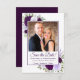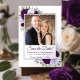 Este belo casamento floral com chic boho salve os cartões de data que mostram sua foto cercada por rosas de aquarelas pintadas manualmente e flores em tons de roxo, lavanda e ameixa. A legenda diz: Salve a Data em letras elegantes de script. Há espaço para seus nomes, a data do casamento e o local abaixo. O dorso é uma cor roxa marmoreada profunda com um aglomerado das mesmas flores. Uma maneira maravilhosa de deixar seus amigos e família saberem sobre seu próximo casamento.