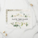 Casamento floral de marfim branco elegante Salve o cartão com buquê elegante de branco, marfim, creme-rosa e folhas verdes de eucalipto e buquê elegante de aquarela.