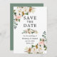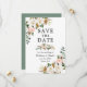 Elegante Rosas Cor-de-Água Rosa e Magnolias Brancas Salvem A Data do Anúncio de Casamento inclui o verde botânico e as folhas de eucalipto. Sage Green Back.