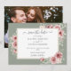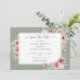 Um convite de casamento moderno e elegante na cor salvia verde com lindas rosas florais e tipografia elegante com sua foto especial no verso. Criado por Thisisnotme©