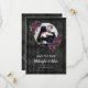 Belo escuro, salve o cartão de data com círculo dourado e rosas roxos escuros num fundo de diamante preto. Tipografia de script para os nomes. Personalize com sua própria foto e data e lugar de casamento e envie para a família e amigos para anunciar seu próximo casamento.