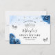 Comemore uma festa elegante com tema de princesa com cores azul real e prata, e está procurando por ideias de papelaria que combinem? Crie seu próprio modelo de convites "save the date" personalizados com seu nome e outros detalhes. A arte em aquarela floral de Raphaela Wilson apresenta rosas azuis reais acentuadas com prata metálica falsa, uma coroa / tiara e borboletas com confetes cintilantes. Se você está organizando um evento "era uma vez" não relacionado a uma festa de 15 anos como mostrado, esses cartões de "save the date" de conto de fadas e florais podem ser reescritos para se adequar a casamentos de rosas, uma quinceanera azul real (para 15 anos), chá de bebê, chá de bebê da Cinderela para menina, bem como outras ocasiões importantes. Se preferir criar ímãs personalizados de "save the date" ou cartões postais econômicos, basta transferir o lindo design de borboleta para outro modelo de papelaria. Prefere um estilo tipográfico alternativo? Sinta-se à vontade para mudar a caligrafia preta e as fontes modernas para algo mais. Você pode até incluir uma foto luxuosa de Mis Quince Anos (XV) ou uma foto de noivado no verso. Aproveite! Categoria: papelaria de casamento elegante "save our date"; convites de casamento com aquarela azul com rosas / flores; e acessórios de envio de "save the date" com tema de princesa de conto de fadas para fest