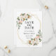 Elegante Rosas Cor-de-Água Rosa e Magnolias Brancas Salva a Data do Anúncio de Casamento inclui o verde botânico e as folhas de eucalipto numa moldura geométrica dourada.