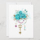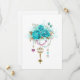 Chave de ouro antiga com rosas de turquesa de tendência, decoradas com folhas de ouro branco e miçangas cor-de-rosa e azuis. Cor agradável. Rosas de turquesa. Ouro branco. Tifania azul.