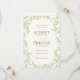 ROWAN Botanical Greenery. Wedding save the date photo card. Features, citrus moss green typography, botanical line art sketch illustration frame and single photo on back.