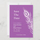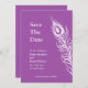Penas de pavão leves e sábias adornam este convite de uma nova forma. Esta opção Salvar a Data faz parte da coleção completa de casamento Agite seus Pais da Cauda e está disponível em várias cores. É apresentado no papel de base; no entanto, recomendo o peso e a textura do papel de linho.