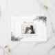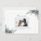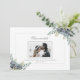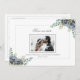 Design apresenta um buquê de eucalipto verde e lindas hipórteses com uma fronteira de cinza de lite e uma foto do casal que vai se casar. Você pode mudar a foto para a sua.