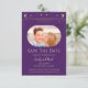 Mística Roxa Dourada Solar Estrela da Lua Salva As Datas apresentam um sol dourado, lua e estrelas armadas sobre um fundo roxo. Dentro é a sua foto favorita e o seu personalizado salva as informações de data. Personalize editando o texto nas caixas de texto. Projetado por ©2022 Evco Studio www.zazzle.com/store/evcostudio