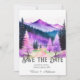 Reserve A Data Roxo Rústico e Floresta Azul de Aquarela