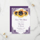 Casamento de girassol rústico e púrpura personalizado, exceto os cartões de data com girassóis, lanternas e rendas florais roxas. Itens correspondentes disponíveis para complementar este casamento rústico com as mulheres roxas salve os cartões de data.