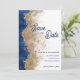 Make a memorable first impression with this elegant royal blue and gold save the date card and set the tone for your luxury wedding celebration.