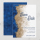 Announce your special day in style with this royal blue and gold save the date card featuring an elegant abstract gold texture and luxurious navy blue background. This sophisticated wedding save the date design creates a stunning first impression and sets the tone for a formal and elegant wedding celebration.