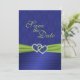 Este corações azuis e verdes limões reais com IMPRESSÃO em fita e joias Salve o cartão de data corresponde ao convite e outros itens mostrados abaixo. O texto é personalizável, assim como as opções de papel. Se você precisar de outros itens neste mesmo design, como cartões com fotos, cartões de recepção, boletins de casamento, cartões de mesa etc., envie-me seu pedido por e-mail. Os itens correspondentes existentes são mostrados abaixo.