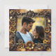 Cartões RSVP de casamento legal e únicos. O Steampunk tinha as engrenagens de metal-ouro, flores e um fundo dourado. Carregue a sua imagem favorita na área personalizar e edite o texto no verso para adicionar as suas opções de refeições de recepção de casamento.