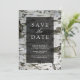 Amaze your guests with this elegant wedding save the date featuring modern typography against a rustic birch bark background. Flip the card over to reveal a beautiful carved heart and add the bride and groom's monogram on the back of the card.