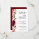 No estilo rústico de vassoura, este encantador casamento salva o cartão de data que contém peônias de aquarela, rosas, anêmonas, flores silvestres e verde misturado que embelezam o lado esquerdo da carta. A paleta colorida lúcida inclui tons ricos de rosa, vermelho borrado, pêssego, esbranquiçado, verde e verde. O tipo de emparelhamento facial usado na modelo de texto transmite seus detalhes de casamento em estilo elegante. A parte de trás do convite é um vermelho farto. Você pode personalizar a cor traseira para a cor de sua escolha selecionando uma cor de fundo diferente. Este esquema de cores é uma escolha adequada para casamentos em qualquer estação do ano. Personalize o texto com seus detalhes.