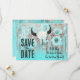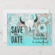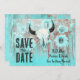 Casamento marrom-teal russo ocidental com flores de sol boho salva a carta de apresentação. Crânio de vaca do cowboy Rodeo com textura floral de chifres. A madeira de celeiro vintage da boêmia do estilo design. Imagem copyright Marg Seregelyi Fotografia.