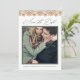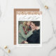 Moderno script de caligrafia verde salvia com renda rústica e visual de aniagem no verso do foto cartão de salvar a data do casamento.