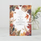 Celebre o seu grande dia com os tons quentes e terríveis do outono. Este design rústico apresenta folhas pintadas à mão, pineges, bolotas e florais em aquarela macia — perfeito para um casamento outono aconchegante. Totalmente personalizável com seus detalhes.