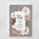 Informe seus amigos e entes queridos de seu futuro casamento com este cartão floral de salve-a-data de outono com uma fronteira de cinza com petúnias e margaridas brancas em tons de terra para garantir que eles possam arranjar folga, se necessário, para garantir que possam comparecer ao seu dia especial.