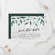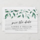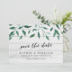 Este rustic Save the Date Card apresenta o italiano Ruscus com as palavras "save the date" (salvar a data) em um roteiro de tendências, tudo contra um fundo de madeira pálida na frente e um verde-escuro no verso. Personalize esta placa substituindo o texto do espaço reservado na modelo para adicionar suas informações. Para obter mais opções, como alterar a fonte e seu tamanho/cor ou o espaçamento entre letras, clique no botão "Personalizar". *Observe que a Marca d'água do Zazzle que aparece na visualização de zoom NÃO aparecerá no produto impresso final. © Rosewood e Citrus