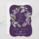 Este casamento roxo, rústico, exceto o cartão de data, é perfeito para um casamento de primavera ou verão. A romântica e elegante design floral apresenta flores lilás roxas de aquarela com uma sensação de jardim boho country.