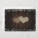 Casamento russo salve o cartão de datilografia com um jarro de pedras com luzes de cordas e adornada com dois corações em um fundo de madeira. Personalizar facilmente este romântico casamento rústico salve a data online. Itens correspondentes disponíveis para complementar este casamento no país rústico salvem a data.