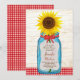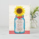 Anuncie seu casamento de estilo com este convite de casamento do país com um pote de mason vintage e um monte de girassóis cheios de alegria! Um padrão de gingham vermelho e fundo de madeira adiciona talento rústico.