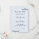 Anuncie seu casamento em estilo com este monocromo rústico Salve o cartão de Data. Apresentando delicados sotaques florais e fontes elegantes de script, este design de eterno é perfeito para casamentos de celeiro, campo ou jardim. A paleta mínima de uma cor — disponível em azul empoeirado, verde-sábio ou esticada quente — adiciona um toque simples, mas romântico. Personalize com seus nomes, data de casamento e local para dar aos convidados um belo lembrete de manutenção.