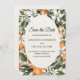 Traga um novo som de cor e charme para seus anúncios de casamento com este cartão de data de laranja tradicional. Apresentando delicados florins brancos e sotaques de citros aquosos envoltos em uma estrutura oval macia e esbranquiçada, é a escolha perfeita para casamentos rústicos, mediterrânicos, de verão ou de vassoura. Totalmente personalizável com seus nomes, data e local para criar uma manutenção que seus hóspedes irão amar.