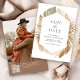 Amaze seus hóspedes com esta elegante, exceto a data com lindas folhas de palma rústicas e grama de pampas com tipografia moderna. Basta adicionar os detalhes do seu evento neste modelo fácil de usar para torná-lo um tipo de guardar o cartão de data.