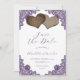 Reserve A Data Rustic Purple Floral Lace Burlap Hearts Wedding