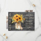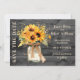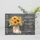 Anuncie seu casamento com charme rústico usando este frasco de girassol Salve o cartão de Datas. Apresentando um fundo de madeira escuro falso, um buquê de girassol de cor-de-água em um vidro de mason embrulhado em fio, e fontes elegantes de roteiro, este design capta uma vibração acolhedora do campo. Perfeito para casamentos de celeiro, celebrações de outono ou eventos temáticos de girassol. Totalmente personalizável com seus nomes, data e uma nota que será seguida por um convite formal. Uma maneira quente e memorável de começar sua jornada de casamento.