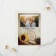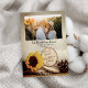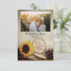 Personalize o casamento natural de Sunflower Woods Salve o anúncio de data com os nomes pessoais do casal, data da cerimônia de casamento e foto. Essa terra de madeira personalizada e chic ou a floresta inspo nuptial mantêm o cartão de data com uma fotografia típica digitalmente aprimorada de um girassol amarelo, fatias de madeira com as palavras SAVE THE DATE queimadas, cones de pinheiro castanho e véu branco com uma buraqueta e fundo branco de cebola. O filtro San Telmo foi adicionado para efeitos adicionais. Sinta-se livre para removê-lo ou substituí-lo de acordo com suas necessidades.