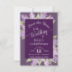Este casamento para salvar o cartão de data é simples, rústico, elegante e bonito. Ele apresenta um design tipográfico com caligrafia de guião em um roxo de ameixa cercado por um bando de flores lilás pintadas manualmente em um fundo roxo empoeirado. O título diz: Salve a Data com espaço para os nomes do casal, a data e o local. A parte traseira tem um pequeno buquê amarrado com um arco branco. Uma maneira maravilhosa de deixar seus amigos e família saberem sobre seu próximo casamento.
