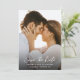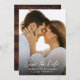 Foto de casamento russa, salve o cartão. A carta se reverte para um fundo de madeira de celeiro. Adicione facilmente sua própria foto e personalize com detalhes do casamento.