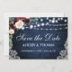 Luzes de corda de madeira azul russa rendas e aquarela Borgonha Buquê azul Marsala Salvar cartão de data