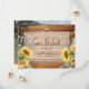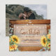 Se você ama girassóis, esta salva de data é para você! Este design apresenta, luzes de cordas, girassóis e anotações manuscritas em um fundo de madeira. Adicione sua foto favorita no verso. Trabalho de arte/gráficos por ReachDreams.etsy.com