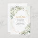 Anuncie seu grande dia com o sábio geométrico White Floral Salve o cartão de data - uma bela pré-visualização do que virá! Este elegante e sofisticado design combina tons de sábio macio com delicados florais brancos, criando um olhar refinado que é ideal para um casamento com tema sábio. Uma borda geométrica dourada adiciona um toque de glamour moderno, moldando os detalhes florais suaves e sotaques exuberantes perfeitamente. Avise seus convidados sobre seu encontro especial com um cartão que captura a essência da elegância do eterno, estabelecendo a palco de um casamento cheio de amor, beleza e graça.