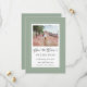 Sage Green Save The Date Noivado O design do cartão de casamento Photo apresenta uma bela borda chic em verde sage que inclui uma elegante borda branca petite. A caligrafia e a escrita são cinzas de carvão sobre fundo branco. Um modelo moderno para data e ano complementa o design único de caligrafia. [NOTA: a exibição da data de casamento, conforme mostrado, usa o bar vertical ou a linha que pode ser encontrada acima do \ em um teclado ou no seu dispositivo inteligente com os caracteres especiais. Você também pode personalizar com qualquer outro personagem de sua escolha.] Personalize com sua foto de noivado favorita para anunciar seu grande dia! Outros designs disponíveis nesta suíte. (Para melhor posicionamento da sua imagem, use uma ferramenta de edição de fotos para centralizar e cortar ANTES de carregar no site do Zazzle.) Envie um e-mail para invitationsuites@gmail.com com perguntas ou solicitações personalizadas.